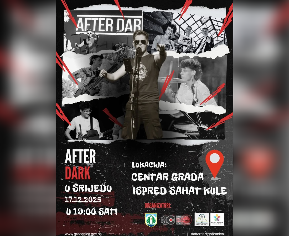 U okviru manifestacije Zima u Gračanici, u srijedu, 17. decembra, s početkom u 19:00 sati, ispred sahat-kule u centru Gračanice bit će održan koncert grupe After Dark, jednog od najzapaženijih bendova na lokalnoj muzičkoj sceni u posljednjih godinu dana.