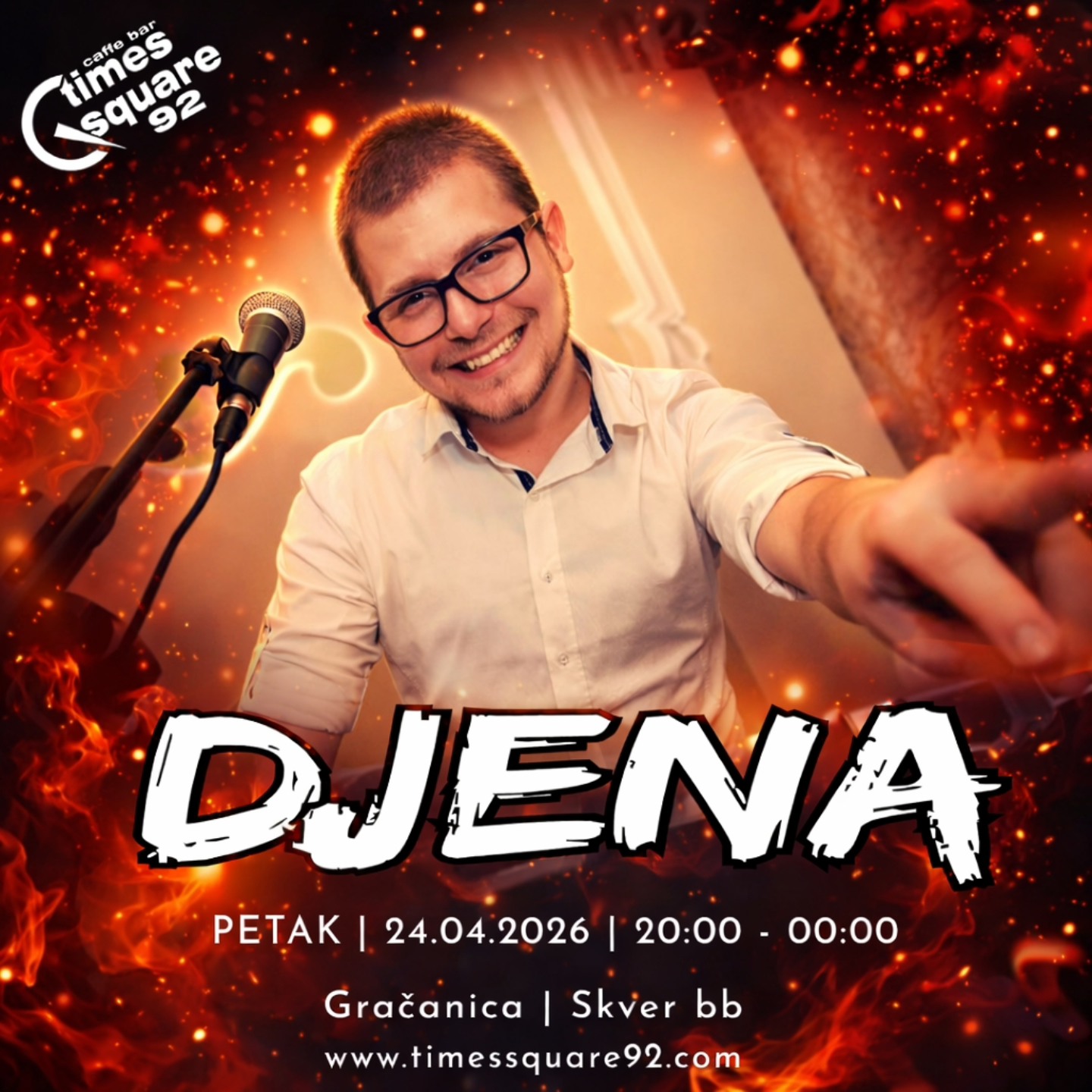 U petak, 24. aprila2025. godine, od 20:00 do 00:00 sati, u Times Square 92 u Gračanici, nastupit će talentirani Djordje Djenic - Djena. Ovaj događaj obećava nezaboravnu noć ispunjenu vrhunskim ritmovima i nevjerojatnom atmosferom.