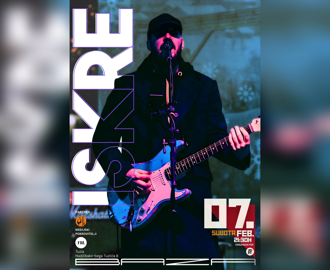 U klubu Baza u Tuzli, u subotu, 7. februara, nastupit će bend Iskre, donoseći večer posvećenu rock i blues klasici u prepoznatljivom klupskom ambijentu.