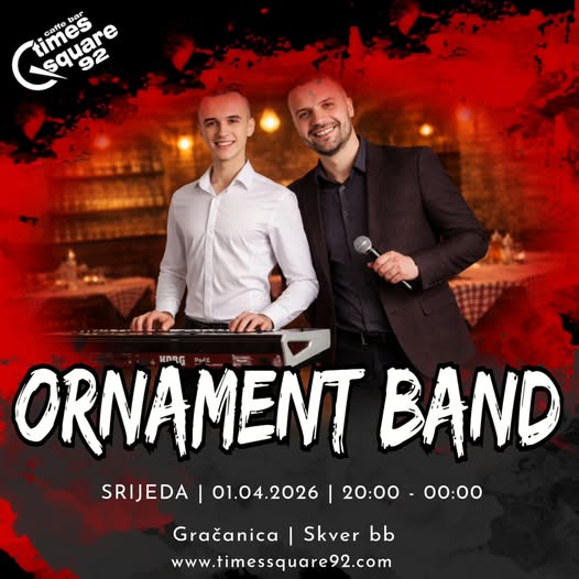 U Caffe baru Times Square 92 u Gračanici, u srijedu, 1. aprila 2026. godine, bit će održana live svirka uz nastup Ornament Banda, s početkom u 20:00 sati.