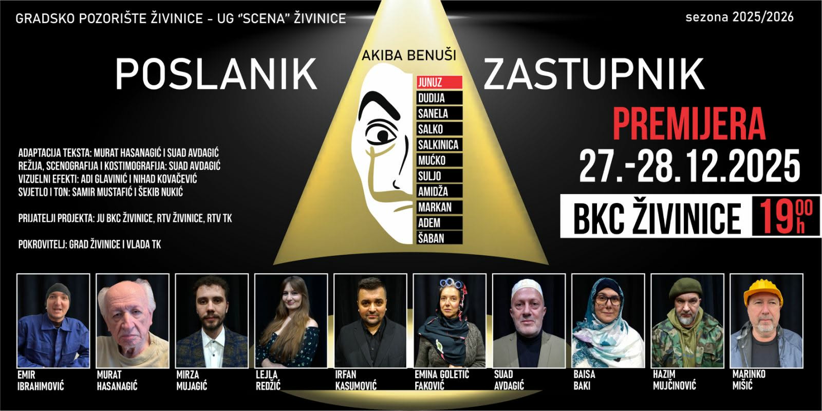 U okviru sezone 2025/2026. i u sklopu festivala „Pozorišne večeri 2025.“, u subotu, 27. decembra 2025. godine, s početkom u 19:00 sati, u Velikoj sali JU BKC Živinice bit će održana velika premijera predstave „Poslanik / Zastupnik“.
